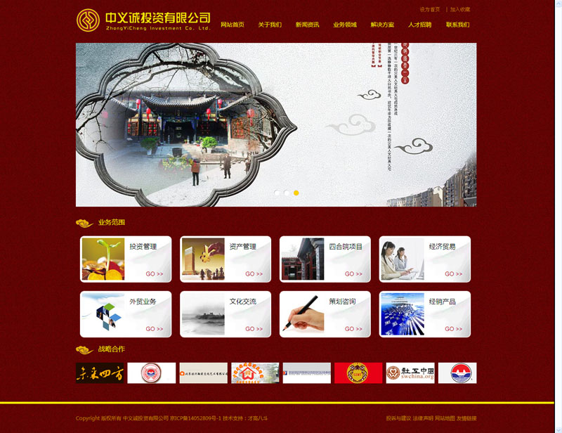中義誠(chéng)投資有限公司(以下簡(jiǎn)稱“中義誠(chéng)公司”)成立于2014年05月,注冊(cè)資本:1億元人民幣。中義誠(chéng)公司自成立以來(lái),一直秉承“創(chuàng)新經(jīng)營(yíng),和諧共贏”經(jīng)營(yíng)理念,遵循“勇于擔(dān)當(dāng)、追求卓越”的企業(yè)精神,涉足四合院古建筑,基礎(chǔ)設(shè)施、城市綜合開(kāi)發(fā)、房地產(chǎn)、金融、小城鎮(zhèn)建設(shè)等多個(gè)業(yè)務(wù)領(lǐng)域,尤其在操作四合院投資中,憑借多年積累豐富的經(jīng)驗(yàn)和對(duì)市場(chǎng)準(zhǔn)確的把握,在業(yè)界和廣大客戶群中享有盛譽(yù)。