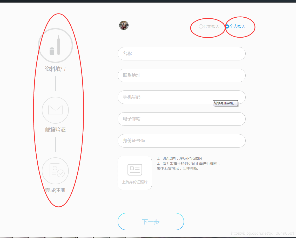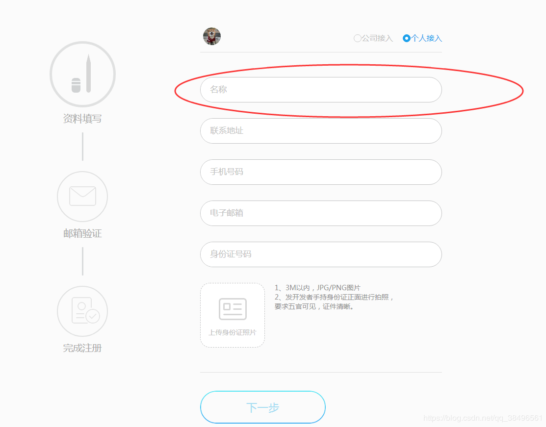 填寫資料頁面這一列顯示的是名稱,很多人看到第一印象肯定會填一個網(wǎng)名或者其他名字,一般不會先寫人的姓名,所以會導(dǎo)致審核失�。☉�(yīng)用開發(fā)商資質(zhì)存在問題,開發(fā)者名稱/證件號碼與資質(zhì)文件不一致,請修改后重新提交),這一列應(yīng)該填你上傳身份證手持照片所有人的姓名。