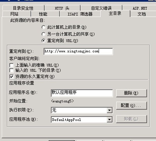 十:在我們剛建的站,鼠標右鍵,選擇屬性,會出現(xiàn)一個出口,選擇主目錄,在選擇重定向到填www.***.com