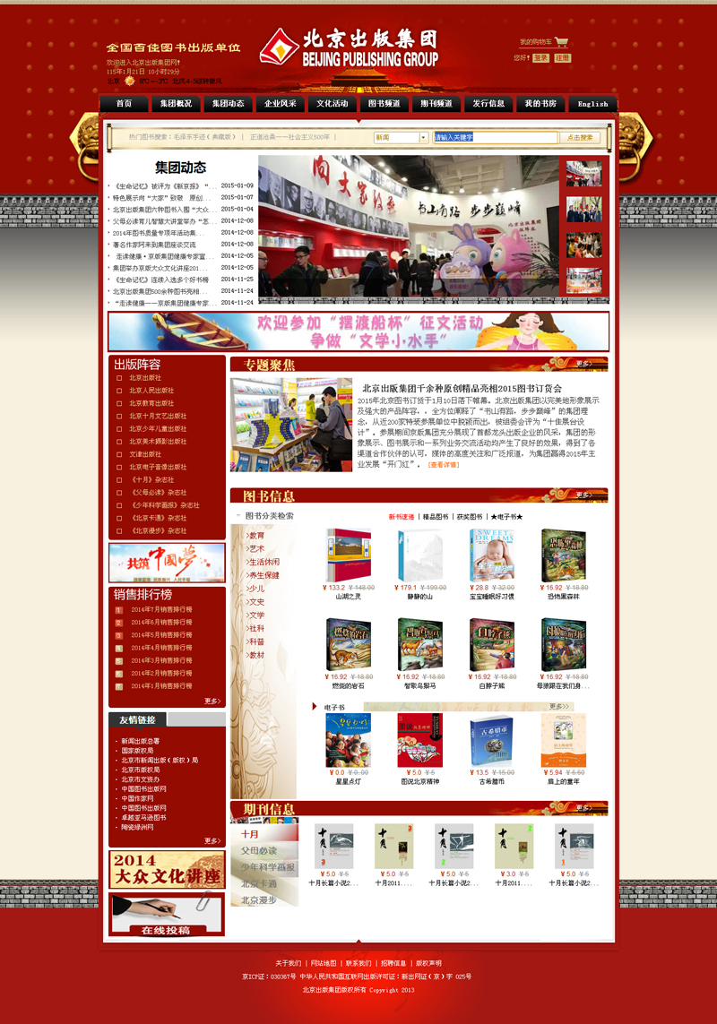 北京出版集團(tuán)是北京市最大的綜合性出版機(jī)構(gòu),有著悠久的歷史和深厚的積淀,前身為1948年成立的北平大眾書店。新中國(guó)成立后,改為北京大眾出版社,1956年正式更名為北京出版社。1999年成立北京出版社出版集團(tuán),是國(guó)家新聞出版總署首批七家試點(diǎn)出版集團(tuán)之一。2009年正式轉(zhuǎn)企改制,成立北京出版集團(tuán)有限責(zé)任公司。如今,集團(tuán)下屬8家專業(yè)出版社、5家雜志社和14家子公司,共有員工750余人。
