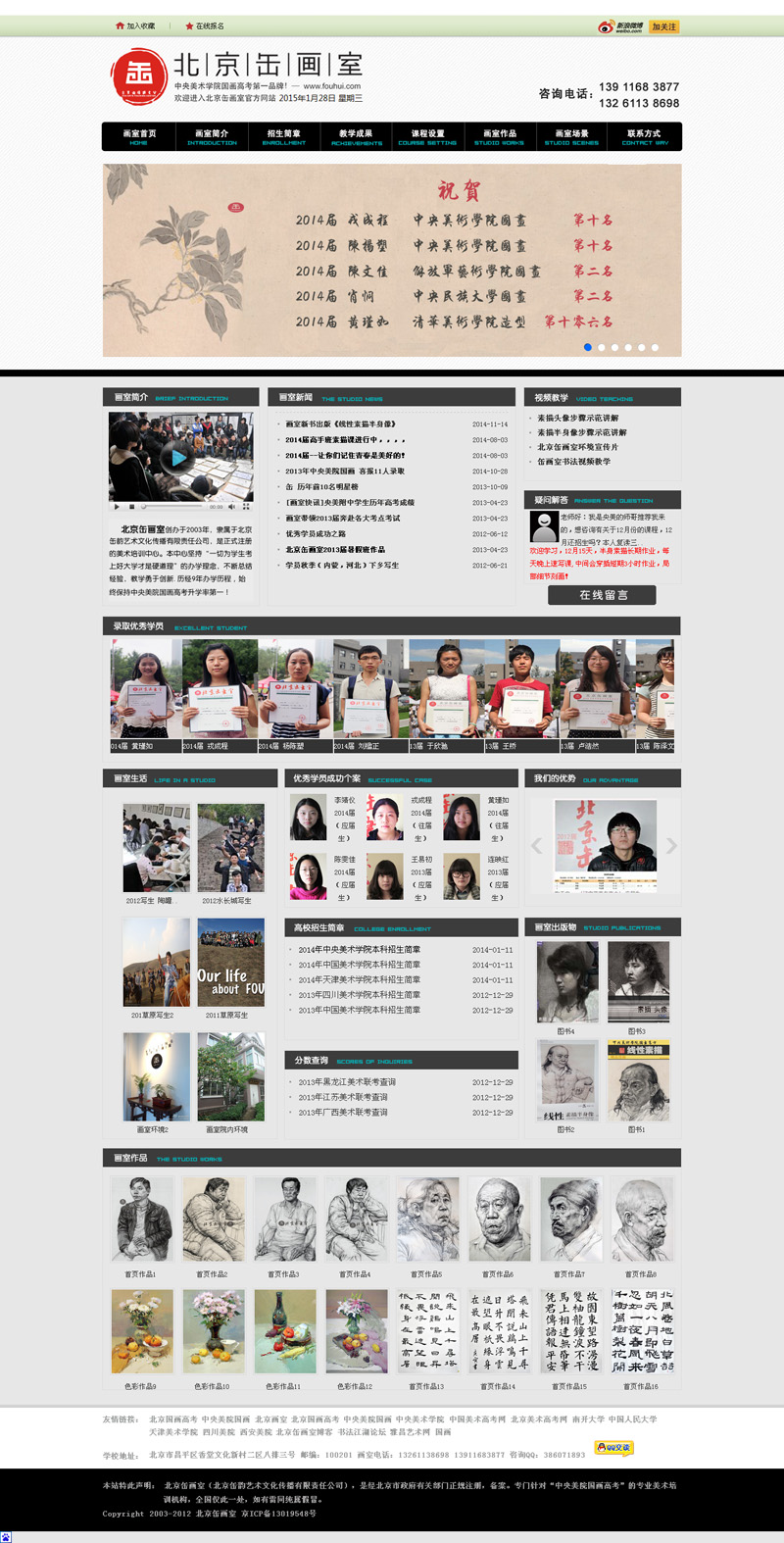 北京缶畫室創(chuàng)辦于2003年,隸屬于北京缶韻藝術(shù)文化傳播有限責(zé)任公司,是正式注冊的美術(shù)培訓(xùn)中心。本中心堅持“一切為學(xué)生考上好大學(xué)才是硬道理”的辦學(xué)理念,不斷總結(jié)經(jīng)驗,教學(xué)勇于創(chuàng)新,歷經(jīng)9年辦學(xué)歷程,始終保持中央美院國畫高考升學(xué)率第一!