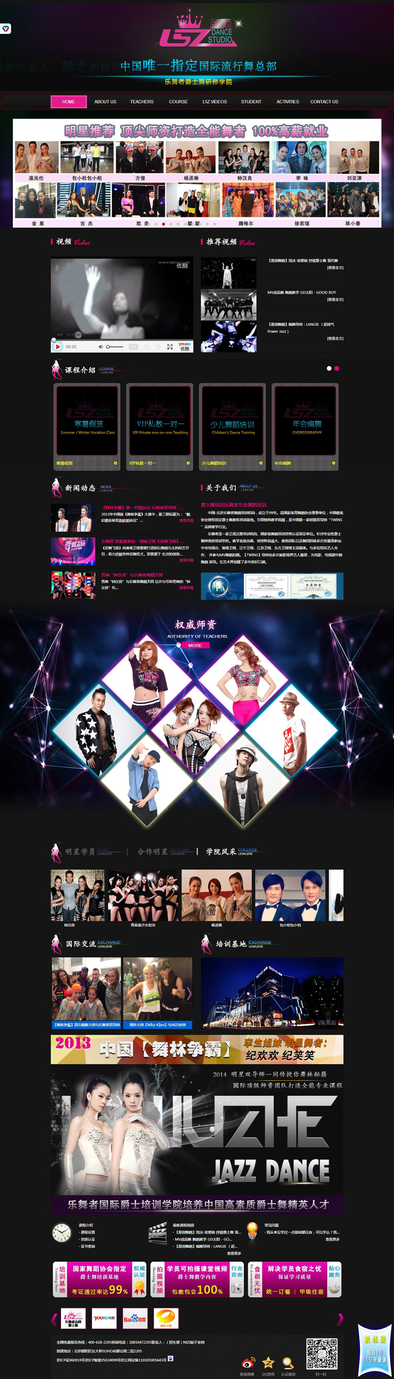 中國頂尖流行舞總部 L5Z樂舞者爵士舞培訓學院,是一家正規(guī)注冊培訓機構(gòu)、國家級舞蹈培訓資格認證指定單位。國際職業(yè)資格認證協(xié)會授權(quán)機構(gòu)、針對專業(yè)性爵士舞教練、藝人培訓類的培訓學府。國際職業(yè)認證CIPC爵士舞教練考核北京授權(quán)中心。教學系統(tǒng)完善、師資陣容龐大、國內(nèi)精英教練團隊以及舞團團體多次受邀請參加中央電視臺、湖南衛(wèi)視、遼寧衛(wèi)視、江蘇衛(wèi)視、東方衛(wèi)視等主流媒體。與多位知名藝人合作、并參與MV舞蹈拍攝。在L5Z樂舞者學習的眾多學員中、培養(yǎng)了多位新一代藝人 如:“于瑛楠”、“莎妮婭”、“張瑞塔等”多位歌壇新星!