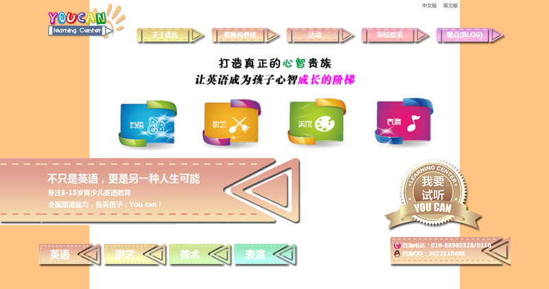 我們本著西式化的教育理念,竭力創(chuàng)造輕松有趣的活動氛圍,關(guān)注每一位孩子的成長個性,培養(yǎng)具有十足自信心和富有創(chuàng)造力的青少兒。